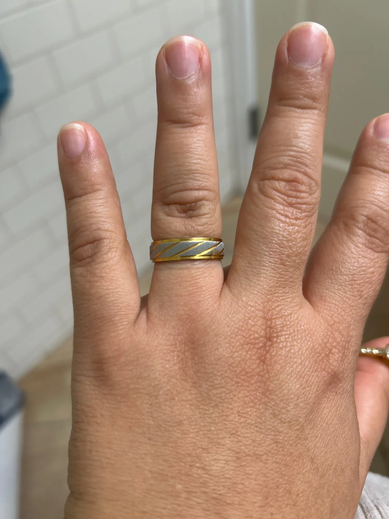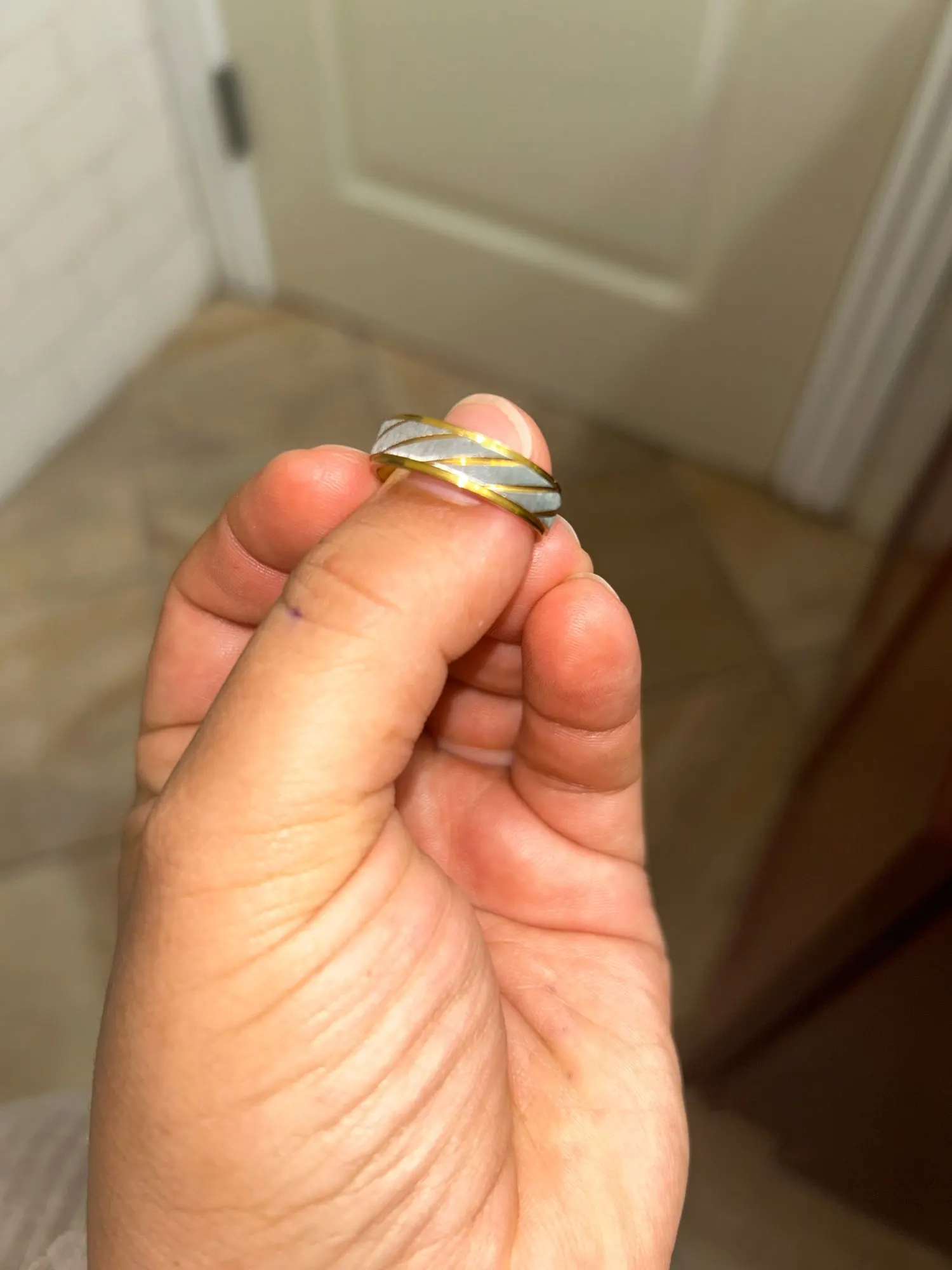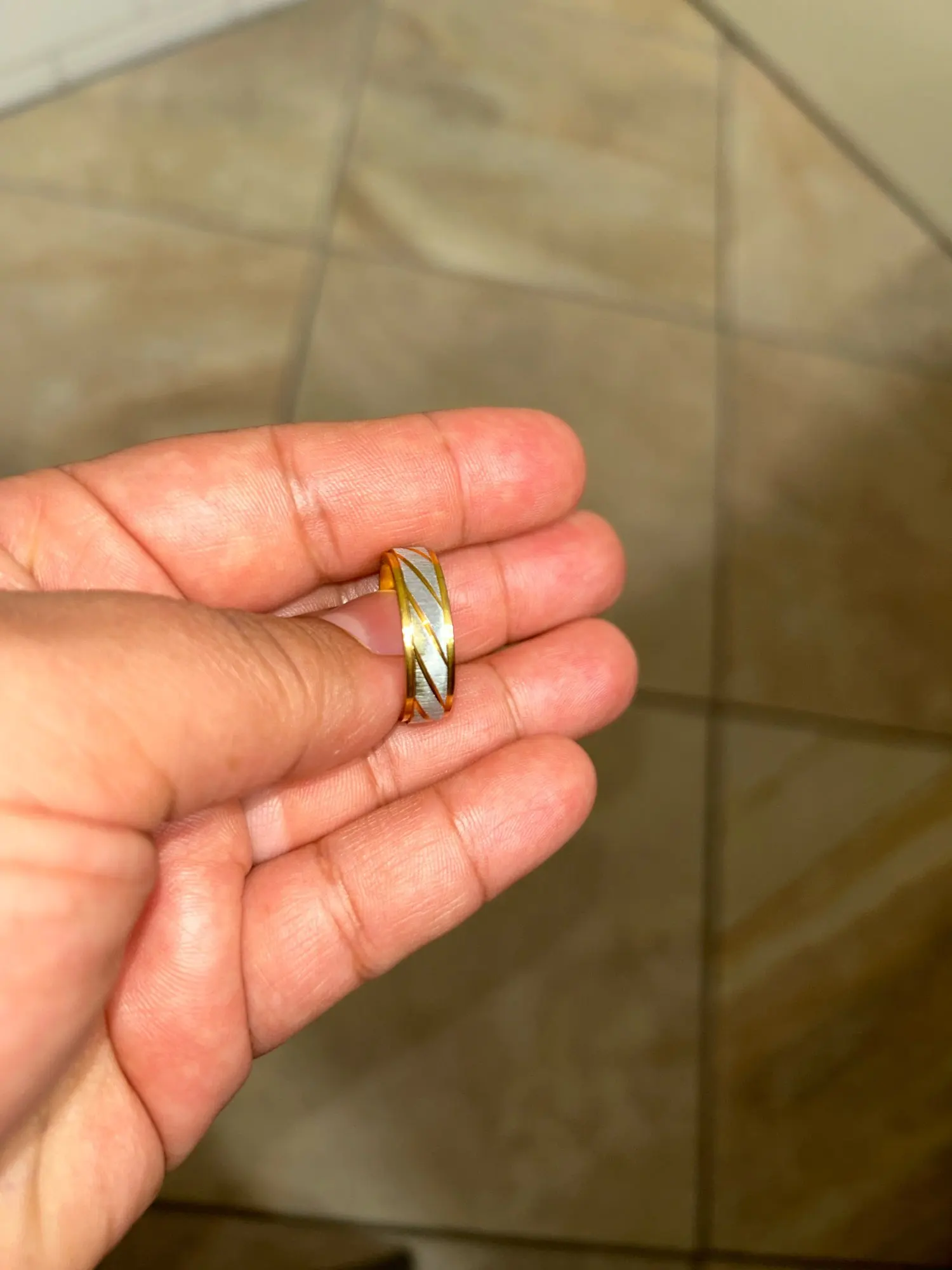 Sleek contrast of silver & gold stripe