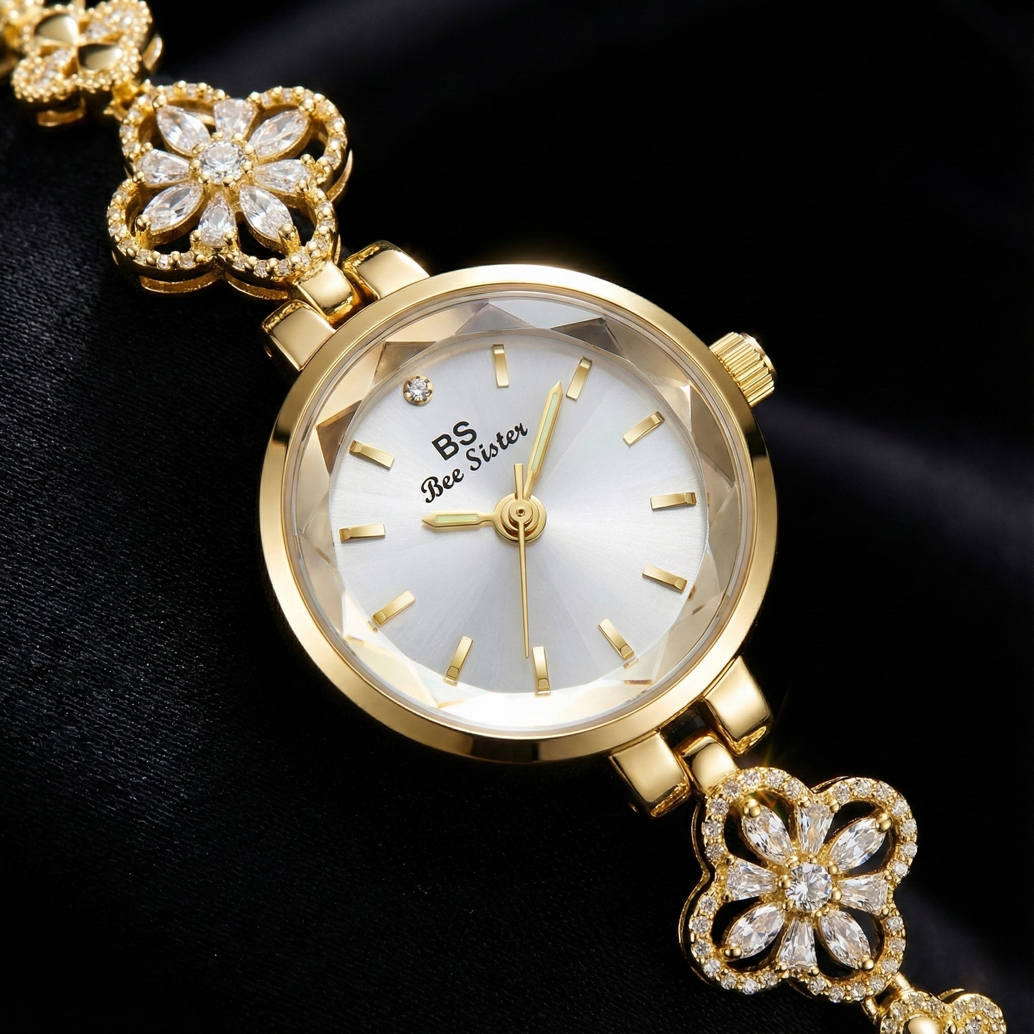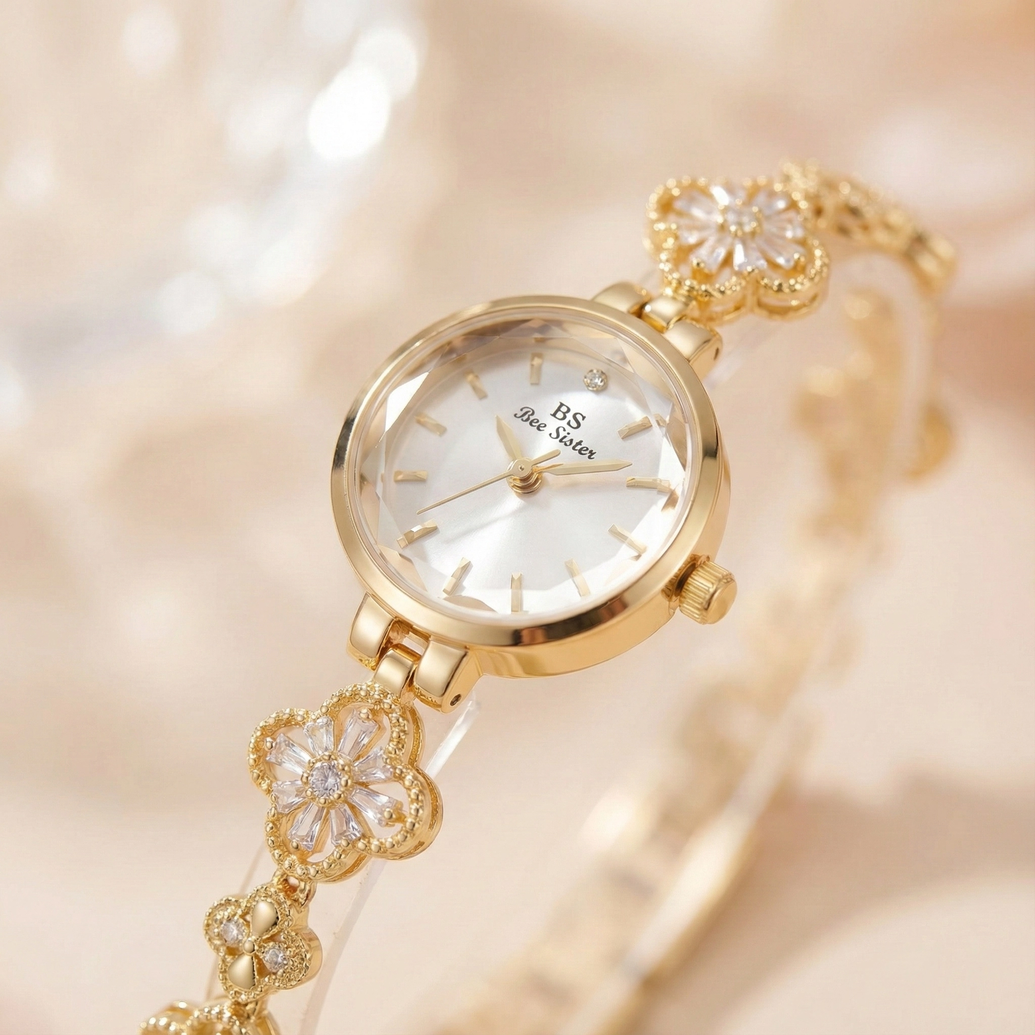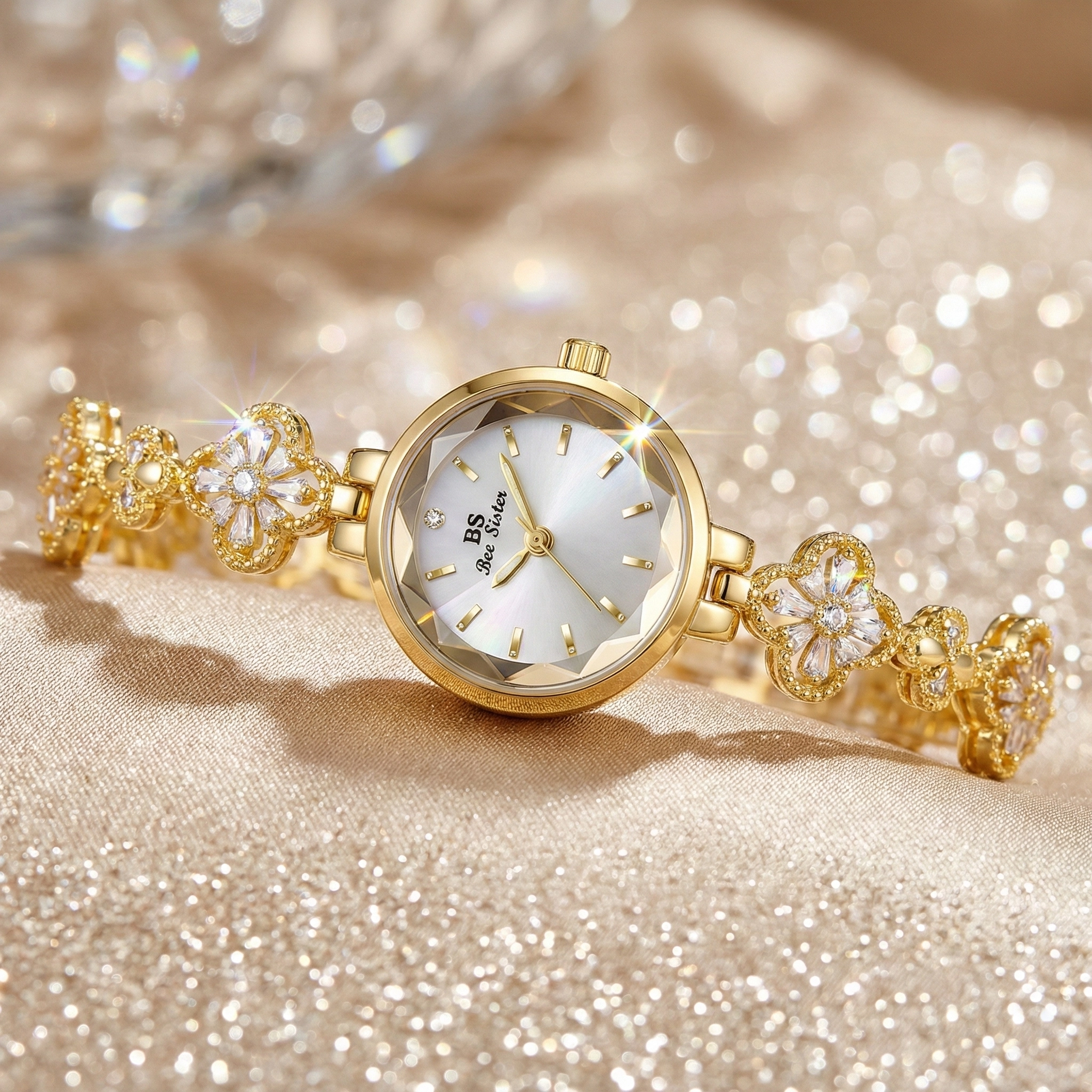 The Luna Flora Crystal Blossom Bracelet Watch is a perfect fusion of elegance, femininity, and jewelry-inspired design. Crafted for women who appreciate refined details, this stunning gold bracelet watch transforms a classic timepiece into a sophisticated fashion accessory.